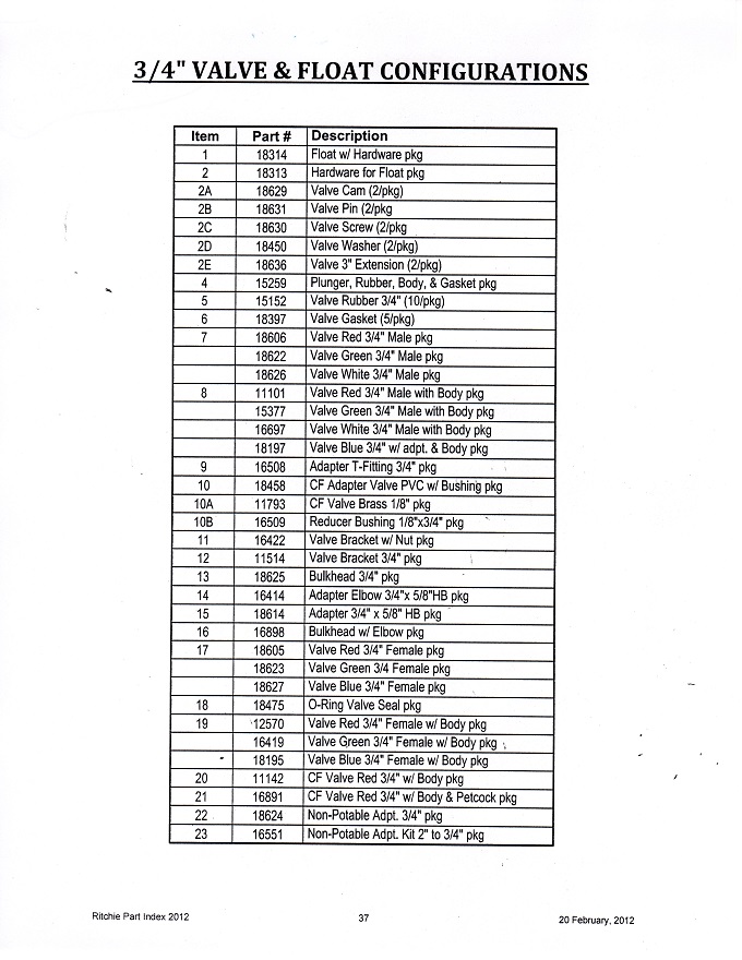 Ritchie Valves, Floats & Components
